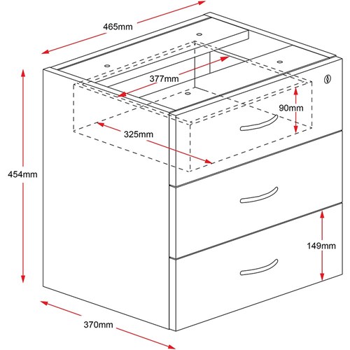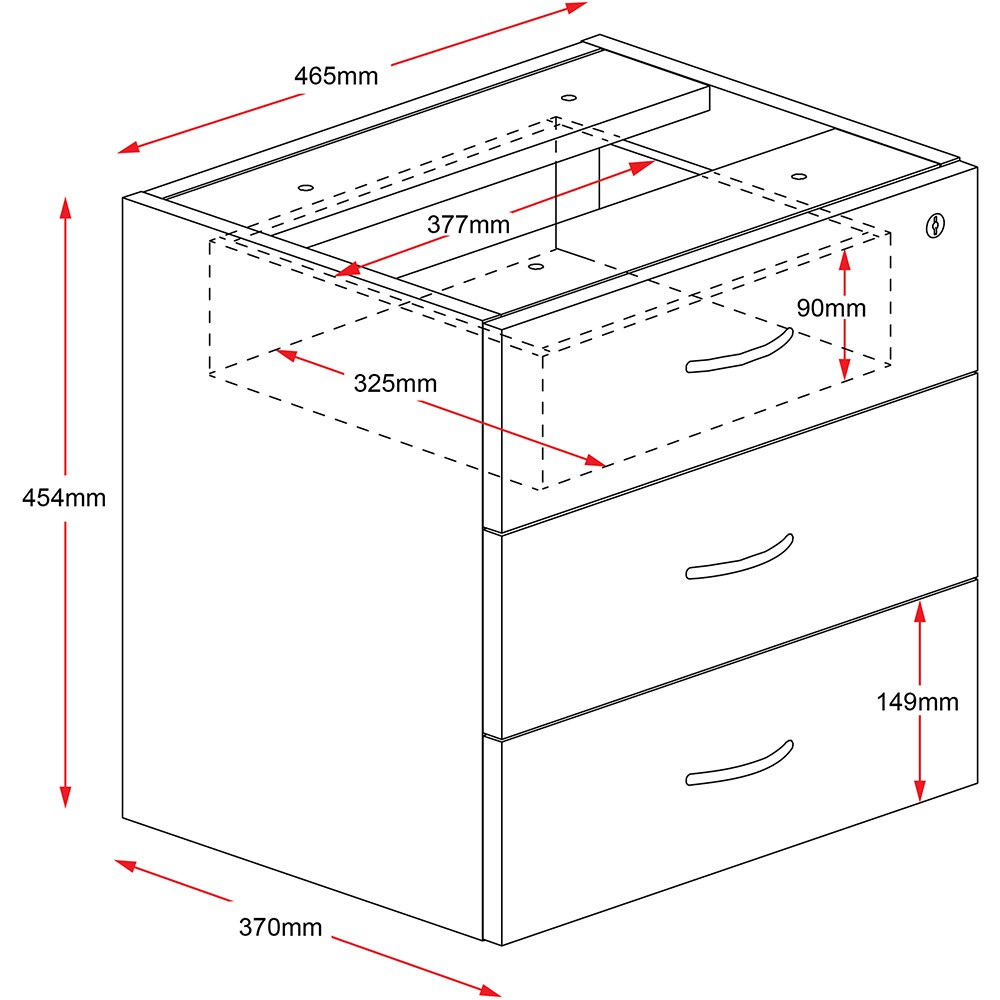 Lockable. Metal runners. E0 Enviroboard. Unit Dimension: 454mm H x465 mm W x 370 mm D. 5 Year Manufacturer's Warranty.