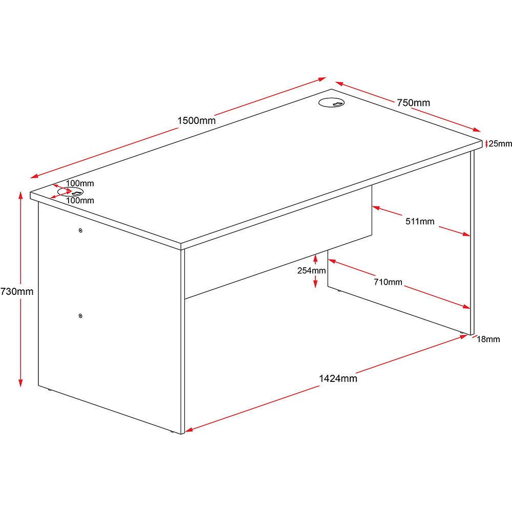Rapid Worker Open Desk 1500Wx750Dx730Mmh Natural Oak & Ironstone