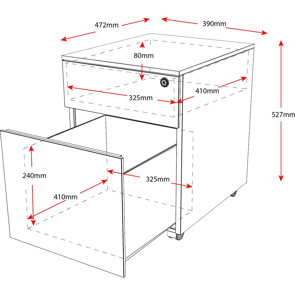 Low height mobile pedestal to fit under height adjustable desks. 527mm H x 390mm W x 472mm D mobile pedestal. 1 pen or stationery drawer and 1 filing drawer. Ball bearing runners. 4 x castors, 5th wheel on bottom drawer for added stability. 0.7mm steel gauge. Lockable drawers, master key locking series. 5 Year Manufacturer's Warranty. Delivery, installation and assembly charges may apply to furniture. Please enquire to confirm.