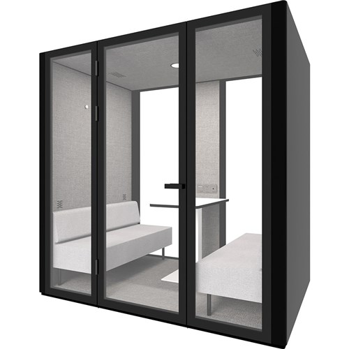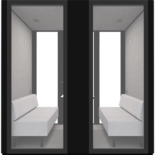 Speech level reduction of 30DB. Air replacement: every 1.8 minutes (total air flow: 2680L/min). Fitted with 1 x LED light (4w 400k). Comes with 4 x ventilation fans, controlled by a door triggered sensor. Fitted with heavy duty castors for easy movement for relocation. Overall Dimension: 2200W x 1200D x 2200mmH. Internal Dimension: 2100W x 930D x 2080mmH. Sofa Overall Size: 1070W x 580D x 680mmH each. 2 Sofas per Pod. Sofa seat depth: 450, Sofa seat height: 390mmH. Back rest height: 290mm. Table Dimension: 700W x 500D x 640Hmm with rectangular flat plate base underframe. Custom order colours and sizes are also available with an 8-10 weeks lead time. 5 Years Manufacturer's Warranty.