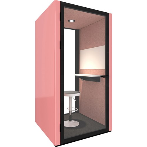 Speech level reduction of 30DB. Air replacement: every 1.2 minutes (total air flow: 1340L/min). Fitted with 1 x LED light (4w 400k). Comes with 2 x ventilation fans, controlled by a door triggered sensor. Fitted with heavy duty castors for easy movement for relocation. Overall Dimension: 1030W x 1030D x 2200mmH. Internal Dimension: 910W x 930D x 2080mmH . Doorway Width: 840mm. Wall Mounted Table Dimension: 500W x 280-200D (tapered) x 25mmT. Custom order colours and sizes are also available with an 8-10 weeks lead time. 5 Years Manufacturer's Warranty.