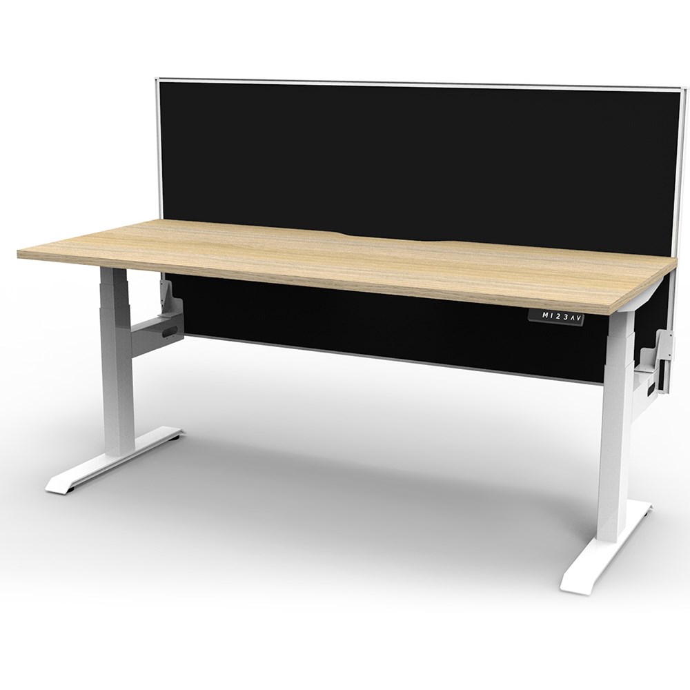 1800mm W x 750mm D x 1330mm H 270mm Table top Height. Single Workstation with Screen. E0 Rated Top, Powdercoat Base. Keypad Safety Lock & Reminder Alarm Setting. Digital Control Panel With 3 Pre-Set Postions. LED Display Panel. Anti- Collision & Anti-Tilt Technology. Dual Motor 3 stage motorised legs. 120kg weight loading capacity. 10 Year Manufacturer's Warranty.