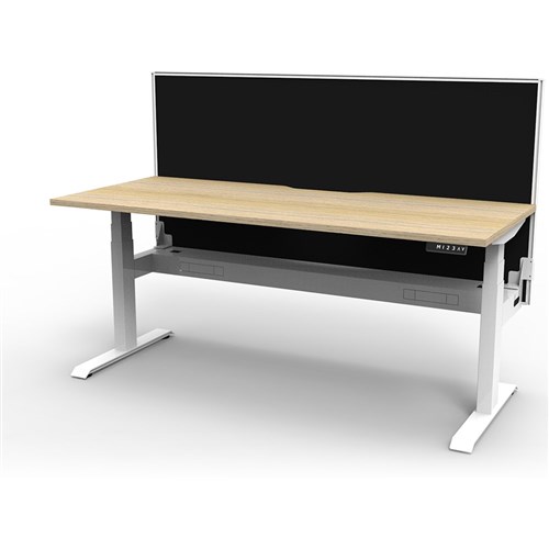 1200mm W x 750mm D x 1330mm H 1270mm Table top Height. Single Workstation with Screen and cable tray. E0 Rated Top, Powdercoat Base. Keypad Safety Lock & Reminder Alarm Setting. Digital Control Panel With 3 Pre-Set Postions. LED Display Panel. Anti- Collision & Anti-Tilt Technology. Dual Motor 3 stage motorised legs. 120kg weight loading capacity. 10 Year Manufacturer's Warranty.