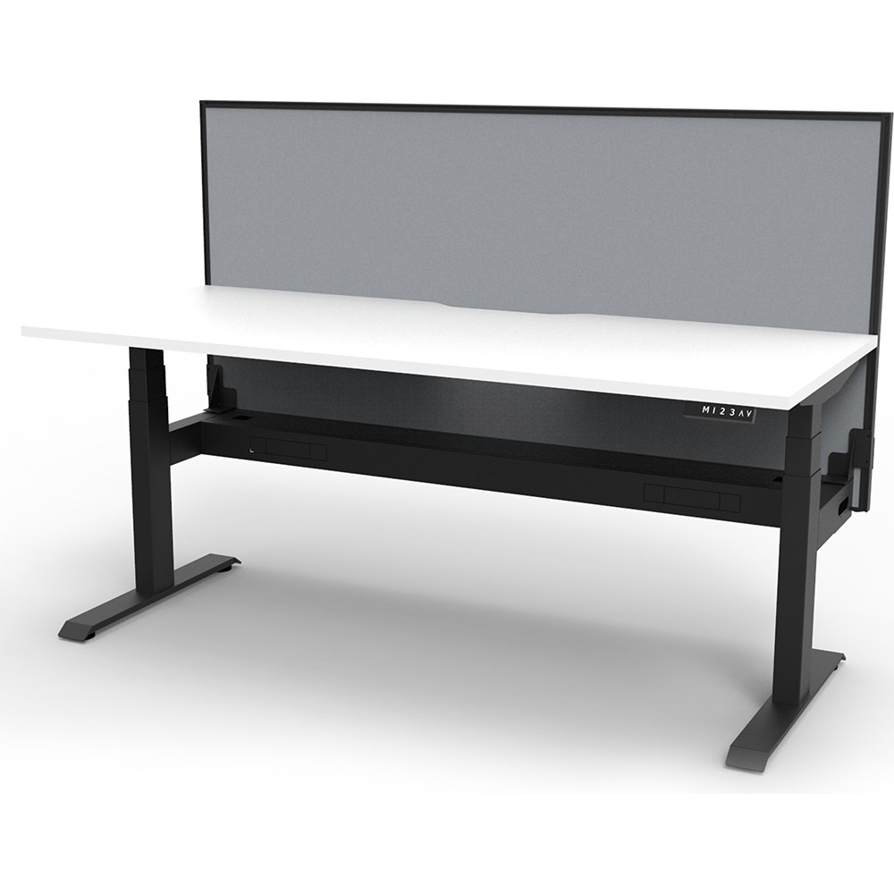 1200mm W x 750mm D x 1330mm H 1270mm Table top Height. Single Workstation with Screen and cable tray. E0 Rated Top, Powdercoat Base. Keypad Safety Lock & Reminder Alarm Setting. Digital Control Panel With 3 Pre-Set Postions. LED Display Panel. Anti- Collision & Anti-Tilt Technology. Dual Motor 3 stage motorised legs. 120kg weight loading capacity. 10 Year Manufacturer's Warranty.