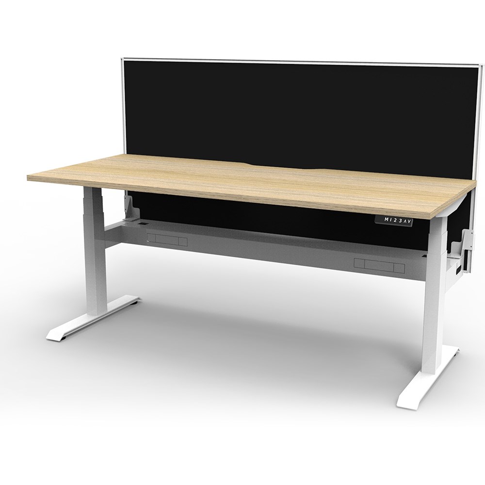 1500mm W x 750mm D x 1330mm H 1270mm Table top Height. Single Workstation with Screen and cable tray. E0 Rated Top, Powdercoat Base. Keypad Safety Lock & Reminder Alarm Setting. Digital Control Panel With 3 Pre-Set Postions. LED Display Panel. Anti- Collision & Anti-Tilt Technology. Dual Motor 3 stage motorised legs. 120kg weight loading capacity. 10 Year Manufacturer's Warranty.