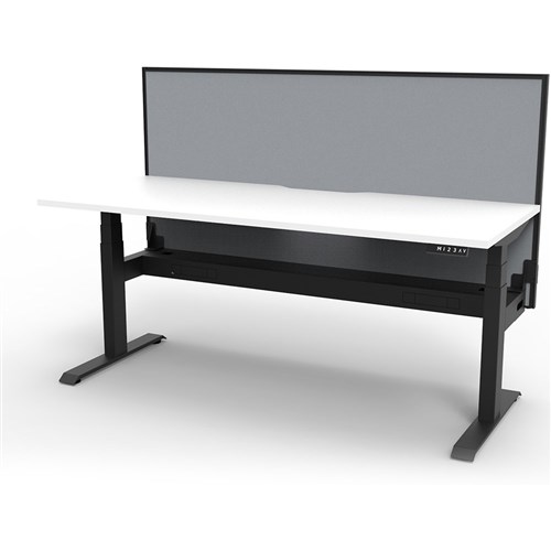 1500mm W x 750mm D x 1330mm H 1270mm Table top Height. Single Workstation with Screen and cable tray. E0 Rated Top, Powdercoat Base. Keypad Safety Lock & Reminder Alarm Setting. Digital Control Panel With 3 Pre-Set Postions. LED Display Panel. Anti- Collision & Anti-Tilt Technology. Dual Motor 3 stage motorised legs. 120kg weight loading capacity. 10 Year Manufacturer's Warranty.