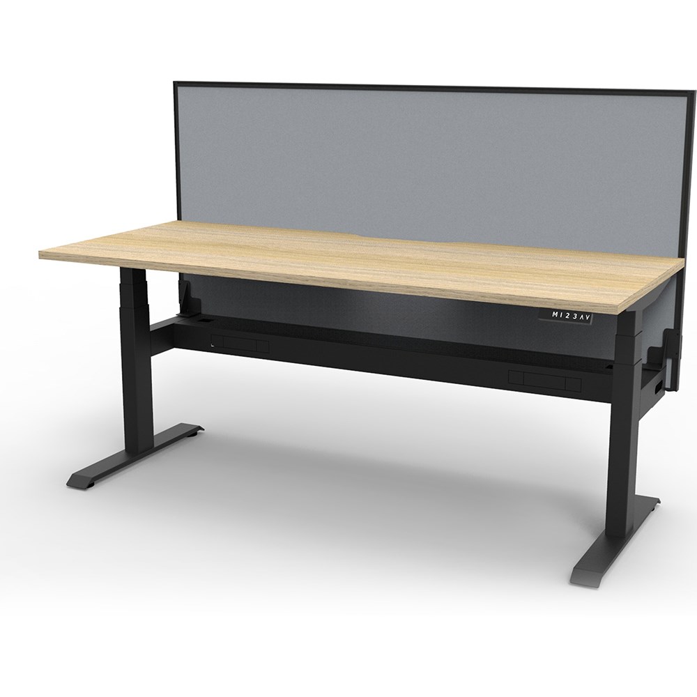 1800mm W x 750mm D x 1330mm H 1270mm Table top Height. Single Workstation with Screen and cable tray. E0 Rated Top, Powdercoat Base. Keypad Safety Lock & Reminder Alarm Setting. Digital Control Panel With 3 Pre-Set Postions. LED Display Panel. Anti- Collision & Anti-Tilt Technology. Dual Motor 3 stage motorised legs. 120kg weight loading capacity. 10 Year Manufacturer's Warranty.