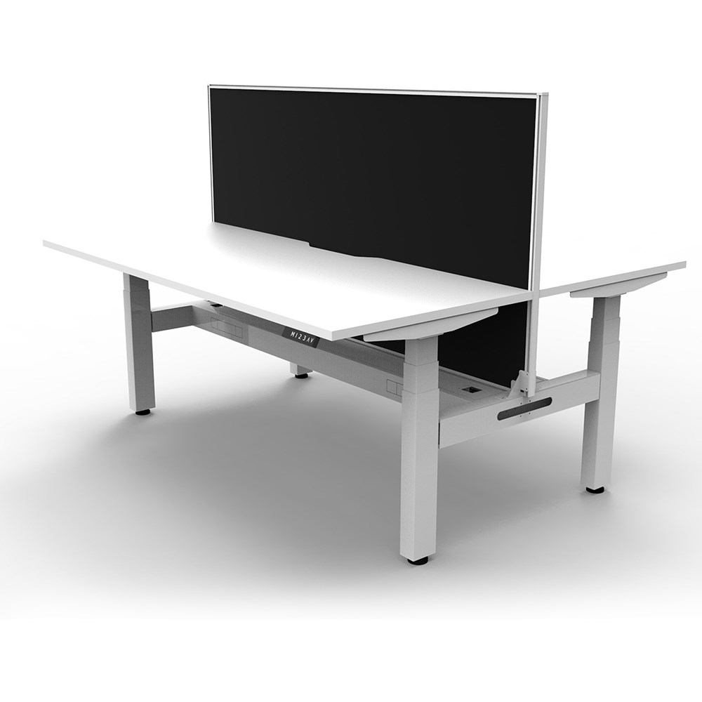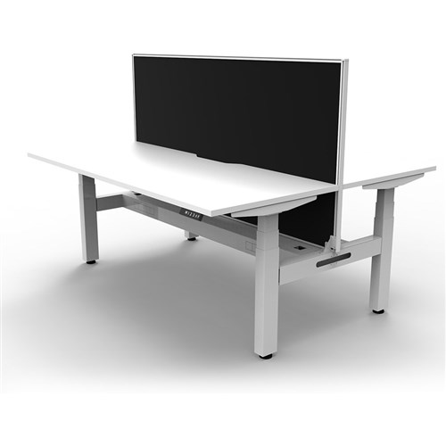 Unit Dimension: 1500mm W x 1500mm D x 1330mm H (Overall) 1270mm Table top Height Back to Back Workstation with Screen and Cable Tray. E0 Rated Top, Powdercoat Base. Keypad Safety Lock & Reminder Alarm Setting. Digital Control Panel With 3 Pre-Set Postions. LED Display Panel. Anti- Collision & Anti-Tilt Technology. Dual Motor 3 stage motorised legs. 120kg weight loading capacity. 10 Year Manufacturer's Warranty.