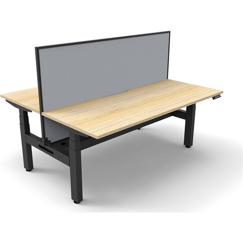 Unit Dimension: 1800mm W x 1500mm D x 1330mm H (Overall) 1270mm Table top Height Back to Back Workstation with Screen and Cable Tray. E0 Rated Top, Powdercoat Base. Keypad Safety Lock & Reminder Alarm Setting. Digital Control Panel With 3 Pre-Set Postions. LED Display Panel. Anti- Collision & Anti-Tilt Technology. Dual Motor 3 stage motorised legs. 120kg weight loading capacity. 10 Year Manufacturer's Warranty.