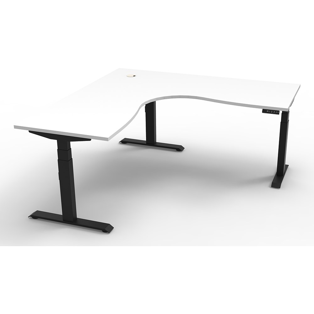 Unit Dimension:1800mm W x 1500mm W x 750mm D x 620mm - 1270mm H. Corner Workstation. E0 Rated Top, Powdercoat Base. Keypad Safety Lock & Reminder Alarm Setting. Digital Control Panel With 3 Pre-Set Postions. LED Display Panel. Anti- Collision & Anti-Tilt Technology. Dual Motor 3 stage motorised legs. 140kg weight loading capacity. 10 Year Manufacturer's Warranty.