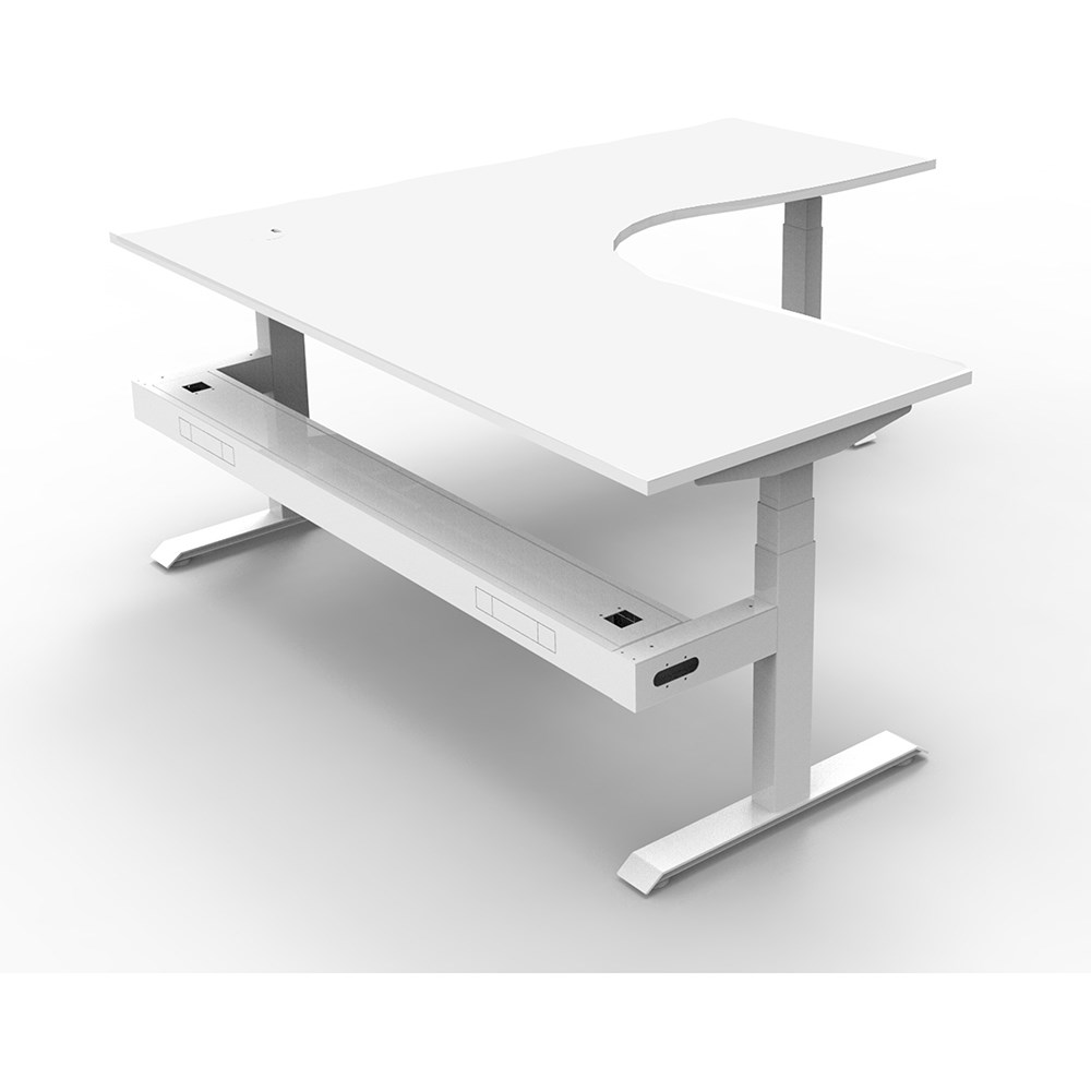 Unit Dimension:1800mm W x 1500mm W x 750mm D x 620mm - 1270mm H. Corner Workstation with Cable Tray. E0 Rated Top, Powdercoat Base. Keypad Safety Lock & Reminder Alarm Setting. Digital Control Panel With 3 Pre-Set Postions. LED Display Panel. Anti- Collision & Anti-Tilt Technology. Dual Motor 3 stage motorised legs. 140kg weight loading capacity. 10 Year Manufacturer's Warranty.