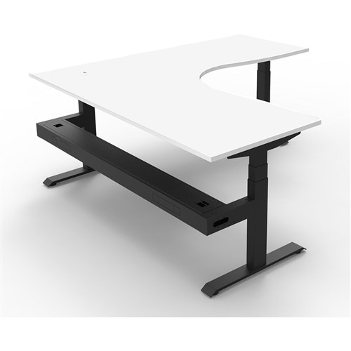 Unit Dimension:1800mm W x 1800mm W x 750mm D x 620mm - 1270mm H. Corner Workstation with Cable Tray. E0 Rated Top, Powdercoat Base. Keypad Safety Lock & Reminder Alarm Setting. Digital Control Panel With 3 Pre-Set Postions. LED Display Panel. Anti- Collision & Anti-Tilt Technology. Dual Motor 3 stage motorised legs. 140kg weight loading capacity. 10 Year Manufacturer's Warranty.
