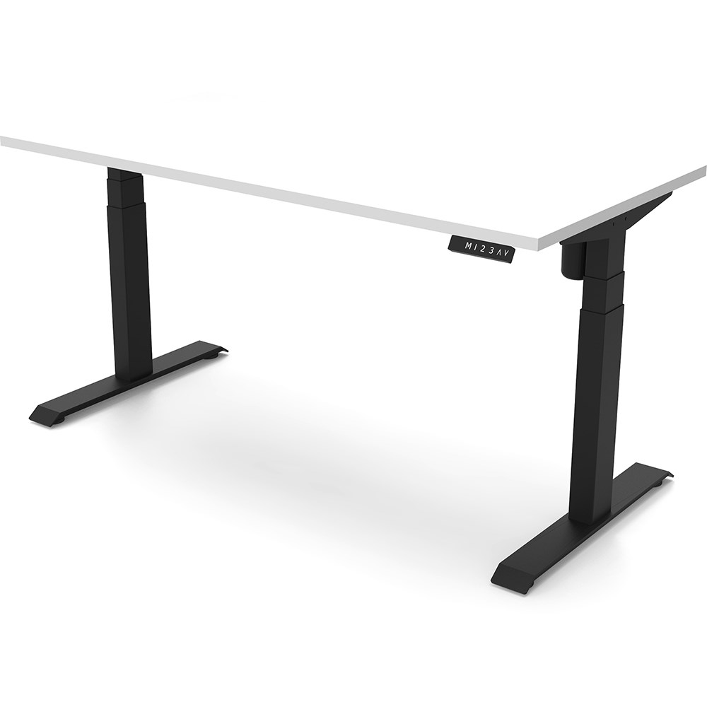 White top with Black frame. Unit Dimension: 1500mm W x 750mm D x 620-1270mm H. E0 rated top. Powdercoat base. Digital control panel with 3 pre-set positions, LED display panel, keypad safety lock & reminder alarm setting. Anti-collision technology, noise emission of less than 50DB. Lifting capacity of 80kg with a max speed of 25mm per second. 700mm wide foot size with adjustable leveling feet. 10 Year Manufacturer's Warranty. Delivery, installation and assembly charges may apply to furniture. Please enquire to confirm.