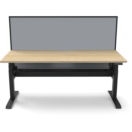 Natural Oak top with Black frame. Unit Dimension: 1200mm W x 750mm D x 1330mm H. 620-1270mm height range for desk. E0 rated top. Powdercoat base. Digital control panel with 3 pre-set positions, LED display panel, keypad safety lock & reminder alarm setting. Anti-collision technology, noise emission of less than 50DB. Lifting capacity of 80kg with a max speed of 25mm per second. 700mm wide foot size with adjustable leveling feet. Comes with 30mm thick privacy screens and cable tray for cable management. 10 Year Manufacturer's Warranty. Delivery, installation and assembly charges may apply to furniture. Please enquire to confirm.
