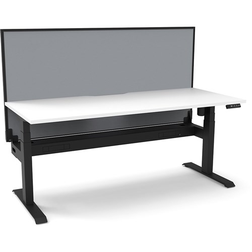 White top with Black frame. Unit Dimension: 1200mm W x 750mm D x 1330mm H. 620-1270mm height range for desk. E0 rated top. Powdercoat base. Digital control panel with 3 pre-set positions, LED display panel, keypad safety lock & reminder alarm setting. Anti-collision technology, noise emission of less than 50DB. Lifting capacity of 80kg with a max speed of 25mm per second. 700mm wide foot size with adjustable leveling feet. Comes with 30mm thick privacy screens and cable tray for cable management. 10 Year Manufacturer's Warranty. Delivery, installation and assembly charges may apply to furniture. Please enquire to confirm.