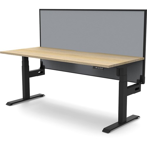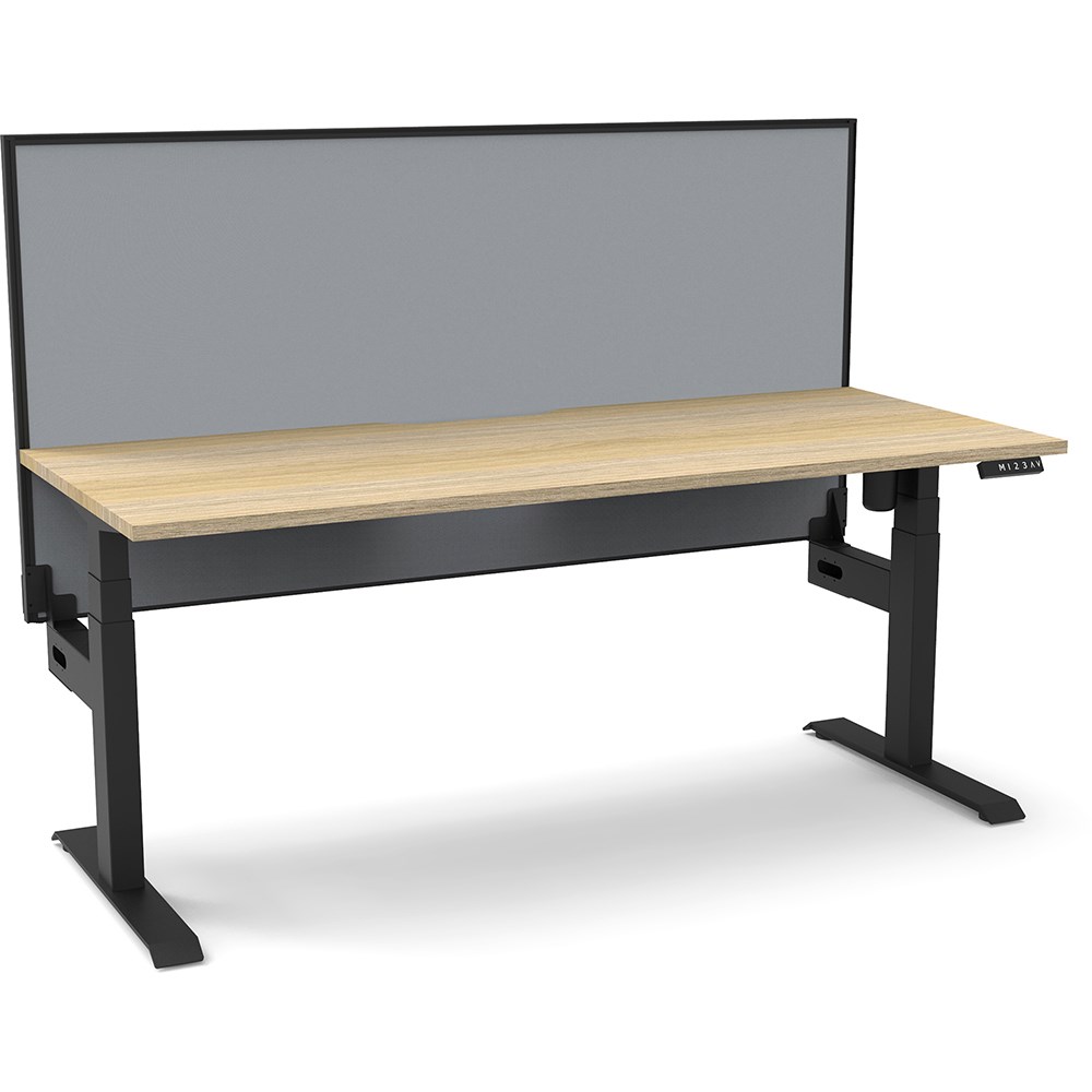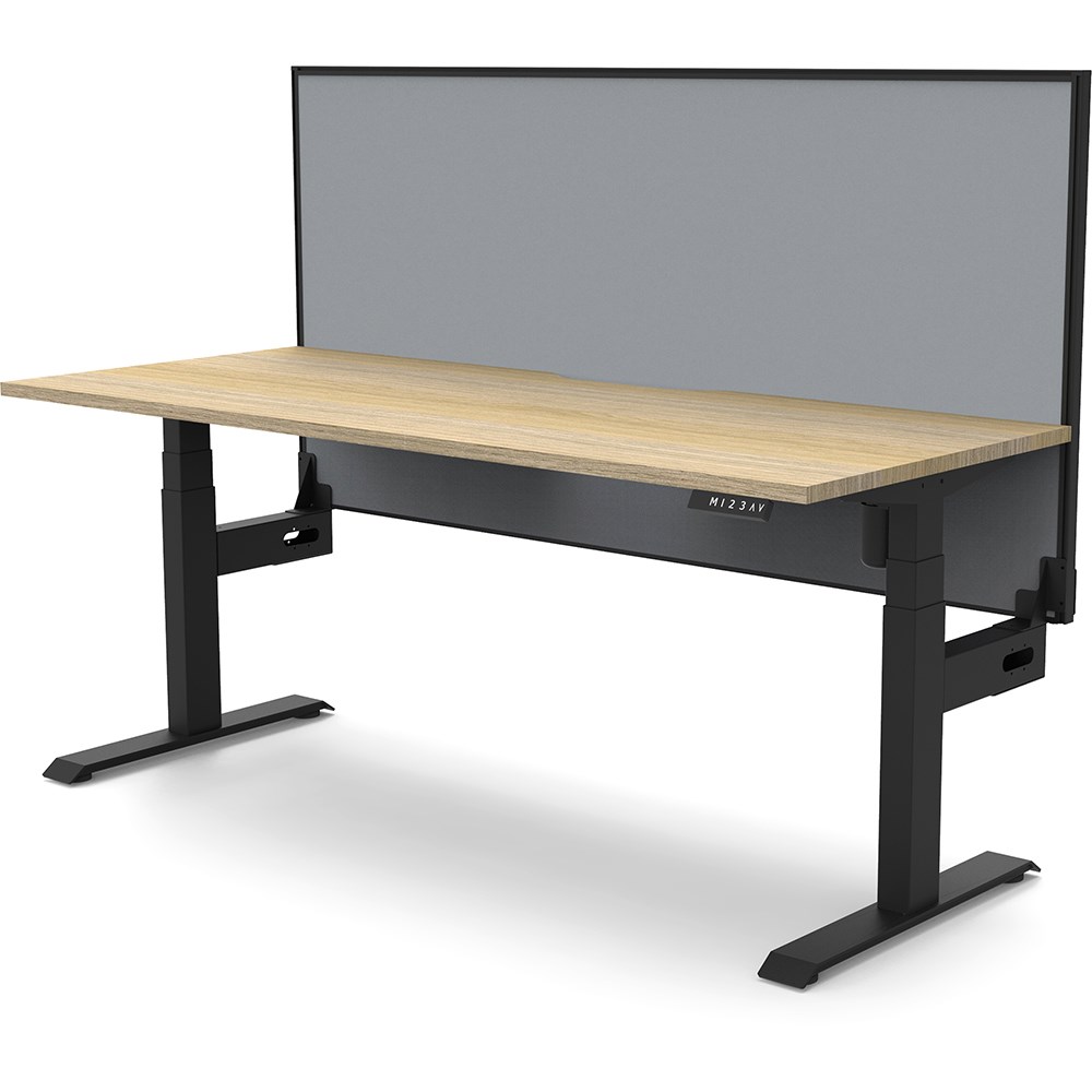Natural Oak top with Black frame. Unit Dimension: 1200mm W x 750mm D x 1330mm H. 620-1270mm height range for desk. E0 rated top. Powdercoat base. Digital control panel with 3 pre-set positions, LED display panel, keypad safety lock & reminder alarm setting. Anti-collision technology, noise emission of less than 50DB. Lifting capacity of 80kg with a max speed of 25mm per second. 700mm wide foot size with adjustable leveling feet. Comes with 30mm thick privacy screen. 10 Year Manufacturer's Warranty. Delivery, installation and assembly charges may apply to furniture. Please enquire to confirm.