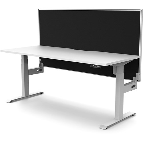White top with White frame. Unit Dimension: 1200mm W x 750mm D x 1330mm H. 620-1270mm height range for desk. E0 rated top. Powdercoat base. Digital control panel with 3 pre-set positions, LED display panel, keypad safety lock & reminder alarm setting. Anti-collision technology, noise emission of less than 50DB. Lifting capacity of 80kg with a max speed of 25mm per second. 700mm wide foot size with adjustable leveling feet. Comes with 30mm thick privacy screen. 10 Year Manufacturer's Warranty. Delivery, installation and assembly charges may apply to furniture. Please enquire to confirm.
