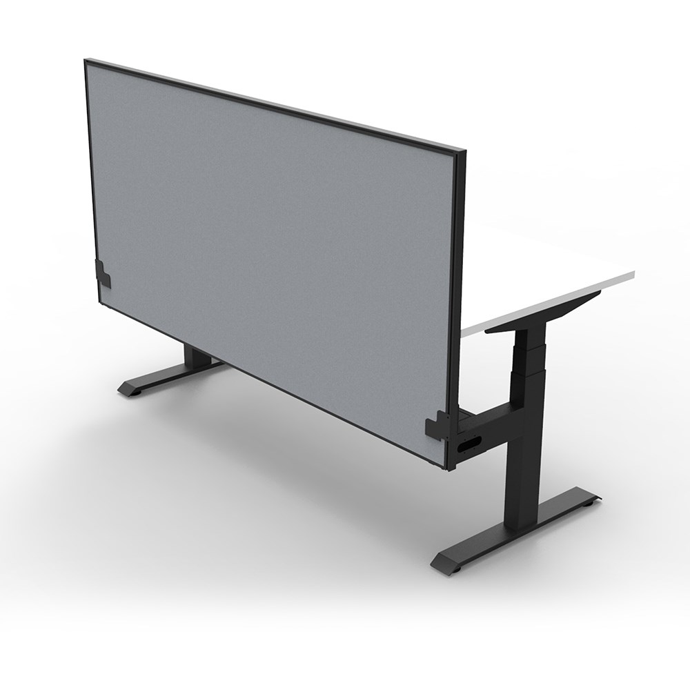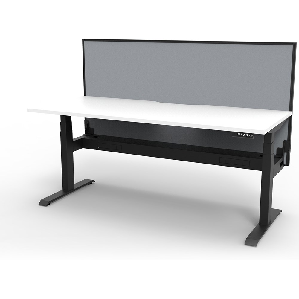 1800mm W x 750mm D x 1330mm H 1270mm Table top Height. Single Workstation with Screen and cable tray. E0 Rated Top, Powdercoat Base. Keypad Safety Lock & Reminder Alarm Setting. Digital Control Panel With 3 Pre-Set Postions. LED Display Panel. Anti- Collision & Anti-Tilt Technology. Dual Motor 3 stage motorised legs. 120kg weight loading capacity. 10 Year Manufacturer's Warranty.