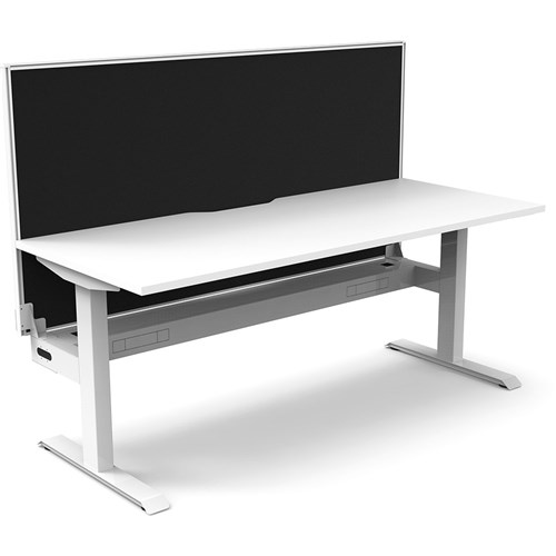 Fixed height desks to match the Boost+ range. White top with White frame. Unit Dimension: 1200mm W x 750mm D x 1330mm H. Desk height 730mm. E0 rated top. Powdercoat base. Comes with 30mm thick privacy screens and cable tray for cable management. 10 Year Manufacturer's Warranty. Delivery, installation and assembly charges may apply to furniture. Please enquire to confirm.