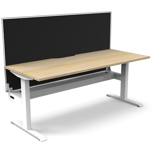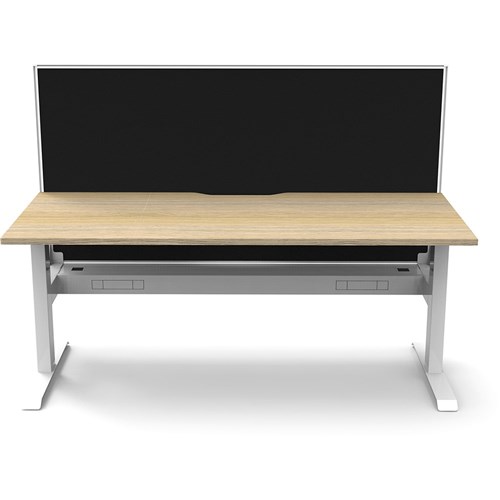 Fixed height desks to match the Boost+ range. Natural Oak top with White frame. Unit Dimension: 1800mm W x 750mm D x 1330mm H. Desk height 730mm. E0 rated top. Powdercoat base. Comes with 30mm thick privacy screens and cable tray for cable management. 10 Year Manufacturer's Warranty. Delivery, installation and assembly charges may apply to furniture. Please enquire to confirm.