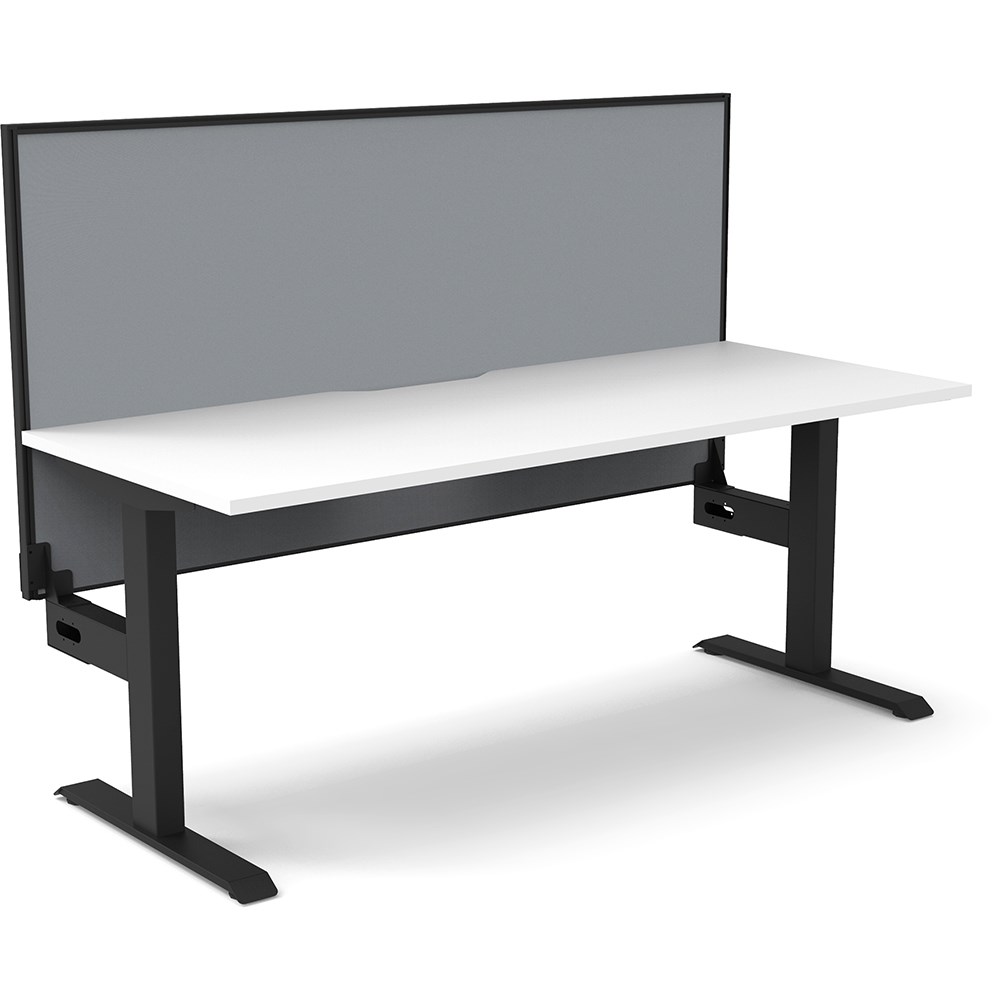 Fixed height desks to match the Boost+ range. White top with Black frame. Unit Dimension: 1200mm W x 750mm D x 1330mm H. Desk height 730mm. E0 rated top. Powdercoat base. Comes with 30mm thick privacy screen. 10 Year Manufacturer's Warranty. Delivery, installation and assembly charges may apply to furniture. Please enquire to confirm.