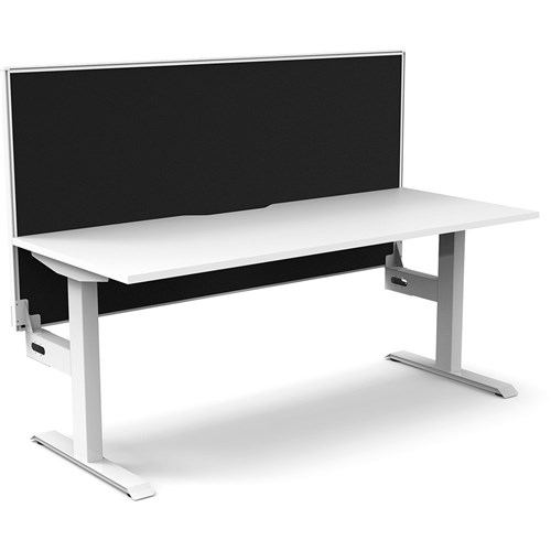 Fixed height desks to match the Boost+ range. White top with White frame. Unit Dimension: 1500mm W x 750mm D x 1330mm H. Desk height 730mm. E0 rated top. Powdercoat base. Comes with 30mm thick privacy screen. 10 Year Manufacturer's Warranty. Delivery, installation and assembly charges may apply to furniture. Please enquire to confirm.