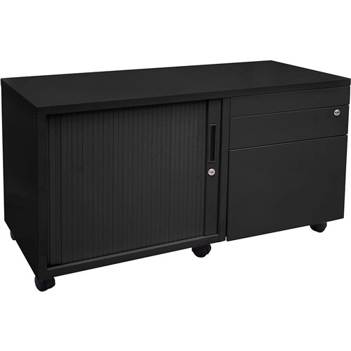 The Rapidline Mobile Caddy allows personal storage at the Workstation. Ideal for users with a permanent workstation or Hot Desk users. Fully Lockable. Master Key locking series. Flush Front Mobile Pedestal. Ball bearing runners to drawers. Available in Right or Left sided Tambour Door. No Assembly required. Unit Dimensions: 615mm H x 1050 mm W x 500 mm D. 10 Year Manufacturer's warranty.