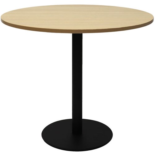 Rapidline Circular Meeting Table 600Mm Dia Disc Base Natural Oak With Black