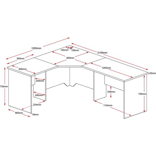 730mm H x 1800 mm W x 1500 mm D 3 piece Corner Workstation Matching Lockable Drawers, Mobile Pedestal and Hob Available As Extras E0 rated Enviroboard 5 Years Manufacturers Warranty