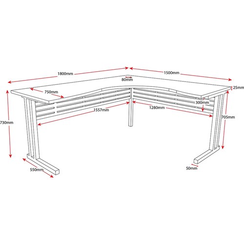 Rapidline Corner Workstation C Leg 1800Wx1500Wx750Mmd Natural Oak
