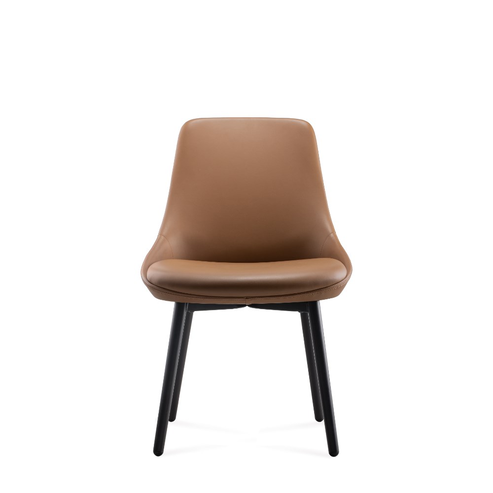 Eros breakout room or dining chair. Robust steel 4 leg frame finished in black powder coat Amber PU leather seat. Dimensions: 530W x 580D x 830H. GreenGuard Gold certified. 5 Year Manufacturer's Warranty. Delivery, installation and assembly charges may apply to furniture. Please enquire to confirm.