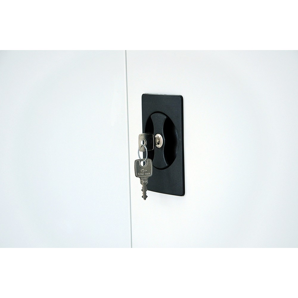 • GO swing door cupboards have a flush lock and three adjustable shelves.