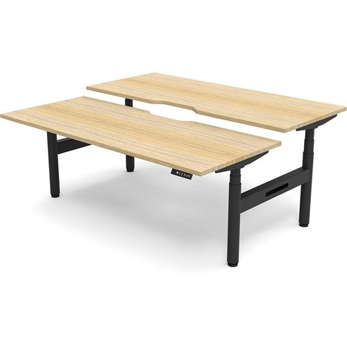 Natural Oak top with Black frame. Unit Dimension: 1500mm W x 1500mm D x 620-1270mm H. 750mm depth per user. E0 rated top. Powdercoat base. Digital control panel with 3 pre-set positions, LED display panel, keypad safety lock & reminder alarm setting. Anti-collision technology, noise emission of less than 50DB. Lifting capacity of 120kg with a max speed of 38mm per second. 70mm diameter round column legs. 700mm wide foot size with adjustable leveling feet, return foot: 700mm. 10 Year Manufacturer's Warranty. Delivery, installation and assembly charges may apply to furniture. Please enquire to confirm.