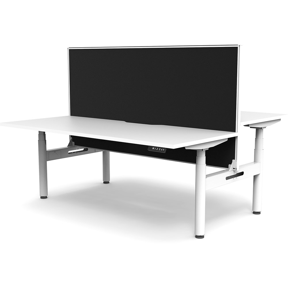 White top with White frame. Unit Dimension: 1500mm W x 1500mm D x 1330mm H. 620-1270mm height range for desk, 750mm depth per user. E0 rated top. Powdercoat base. Digital control panel with 3 pre-set positions, LED display panel, keypad safety lock & reminder alarm setting. Anti-collision technology, noise emission of less than 50DB. Lifting capacity of 120kg with a max speed of 38mm per second. 70mm diameter round column legs. 700mm wide foot size with adjustable leveling feet, return foot: 700mm. Comes with 30mm thick privacy screen. 10 Year Manufacturer's Warranty. Delivery, installation and assembly charges may apply to furniture. Please enquire to confirm.