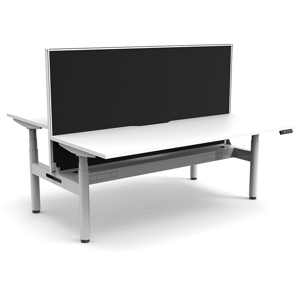 White top with White frame. Unit Dimension: 1500mm W x 1500mm D x 1330mm H. 620-1270mm height range for desk, 750mm depth per user. E0 rated top. Powdercoat base. Digital control panel with 3 pre-set positions, LED display panel, keypad safety lock & reminder alarm setting. Anti-collision technology, noise emission of less than 50DB. Lifting capacity of 120kg with a max speed of 38mm per second. 70mm diameter round column legs. 700mm wide foot size with adjustable leveling feet, return foot: 700mm. Comes with 30mm thick privacy screens and cable tray for cable management. 10 Year Manufacturer's Warranty. Delivery, installation and assembly charges may apply to furniture. Please enquire to confirm.