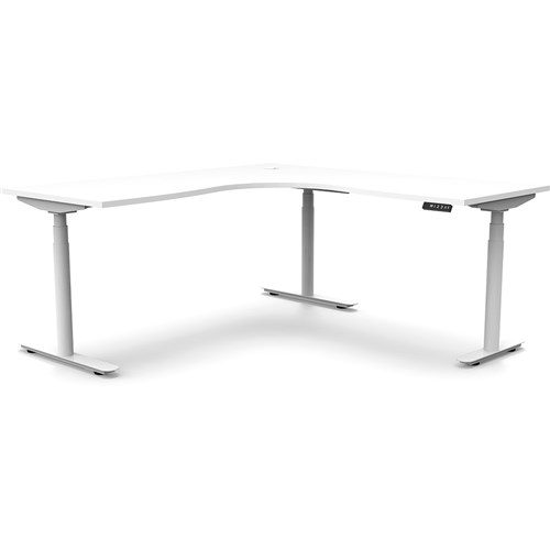 White top with White frame. Unit Dimension: 1800/1500mm W x 750mm D x 620-1270mm H. E0 rated top. Powdercoat base. Digital control panel with 3 pre-set positions, LED display panel, keypad safety lock & reminder alarm setting. Anti-collision technology, noise emission of less than 50DB. Lifting capacity of 120kg with a max speed of 38mm per second. 70mm diameter round column legs. 700mm wide foot size with adjustable leveling feet, return foot: 700mm. 10 Year Manufacturer's Warranty. Delivery, installation and assembly charges may apply to furniture. Please enquire to confirm.