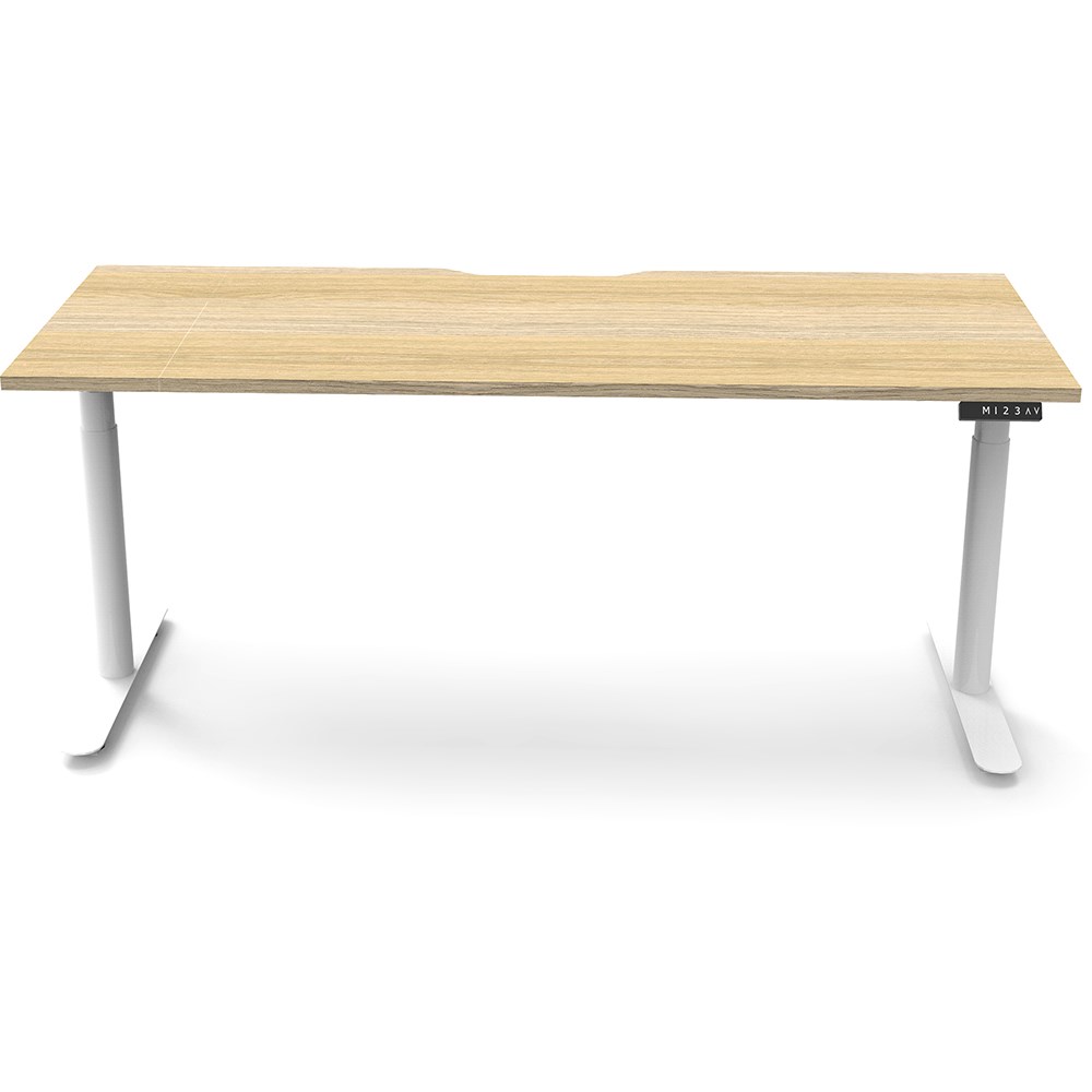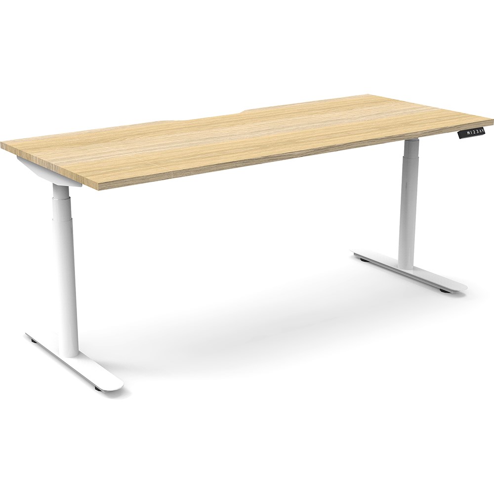 Natural Oak top with White frame. Unit Dimension: 1200mm W x 750mm D x 620-1270mm H. E0 rated top. Powdercoat base. Digital control panel with 3 pre-set positions, LED display panel, keypad safety lock & reminder alarm setting. Anti-collision technology, noise emission of less than 50DB. Lifting capacity of 120kg with a max speed of 38mm per second. 70mm diameter round column legs. 700mm wide foot size with adjustable leveling feet, return foot: 700mm. 10 Year Manufacturer's Warranty. Delivery, installation and assembly charges may apply to furniture. Please enquire to confirm.