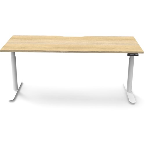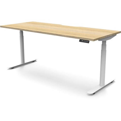 Natural Oak top with White frame. Unit Dimension: 1500mm W x 750mm D x 620-1270mm H. E0 rated top. Powdercoat base. Digital control panel with 3 pre-set positions, LED display panel, keypad safety lock & reminder alarm setting. Anti-collision technology, noise emission of less than 50DB. Lifting capacity of 120kg with a max speed of 38mm per second. 70mm diameter round column legs. 700mm wide foot size with adjustable leveling feet, return foot: 700mm. 10 Year Manufacturer's Warranty. Delivery, installation and assembly charges may apply to furniture. Please enquire to confirm.