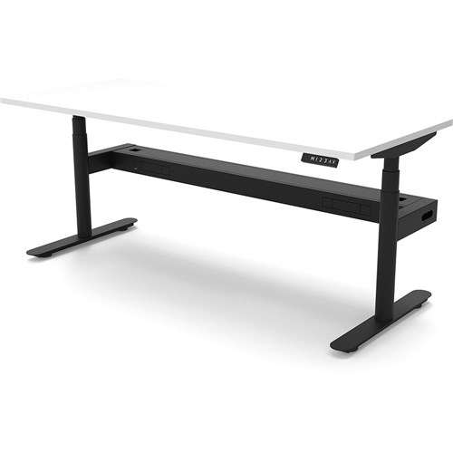 White top with Black frame. Unit Dimension: 1500mm W x 750mm D x 620-1270mm H. Comes with cable tray for cable management. E0 rated top. Powdercoat base. Digital control panel with 3 pre-set positions, LED display panel, keypad safety lock & reminder alarm setting. Anti-collision technology, noise emission of less than 50DB. Lifting capacity of 120kg with a max speed of 38mm per second. 70mm diameter round column legs. 700mm wide foot size with adjustable leveling feet, return foot: 700mm. Comes with cable tray for cable management. 10 Year Manufacturer's Warranty. Delivery, installation and assembly charges may apply to furniture. Please enquire to confirm.