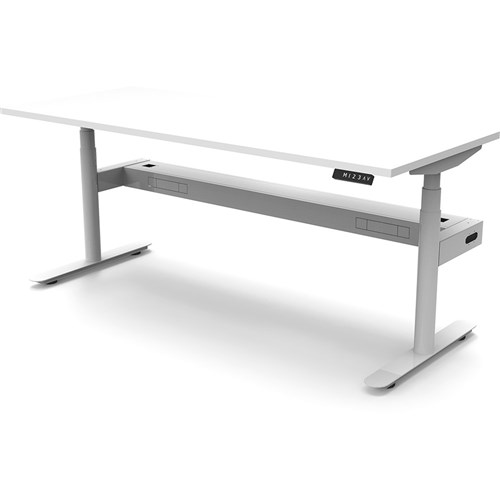White top with White frame. Unit Dimension: 1500mm W x 750mm D x 620-1270mm H. Comes with cable tray for cable management. E0 rated top. Powdercoat base. Digital control panel with 3 pre-set positions, LED display panel, keypad safety lock & reminder alarm setting. Anti-collision technology, noise emission of less than 50DB. Lifting capacity of 120kg with a max speed of 38mm per second. 70mm diameter round column legs. 700mm wide foot size with adjustable leveling feet, return foot: 700mm. Comes with cable tray for cable management. 10 Year Manufacturer's Warranty. Delivery, installation and assembly charges may apply to furniture. Please enquire to confirm.