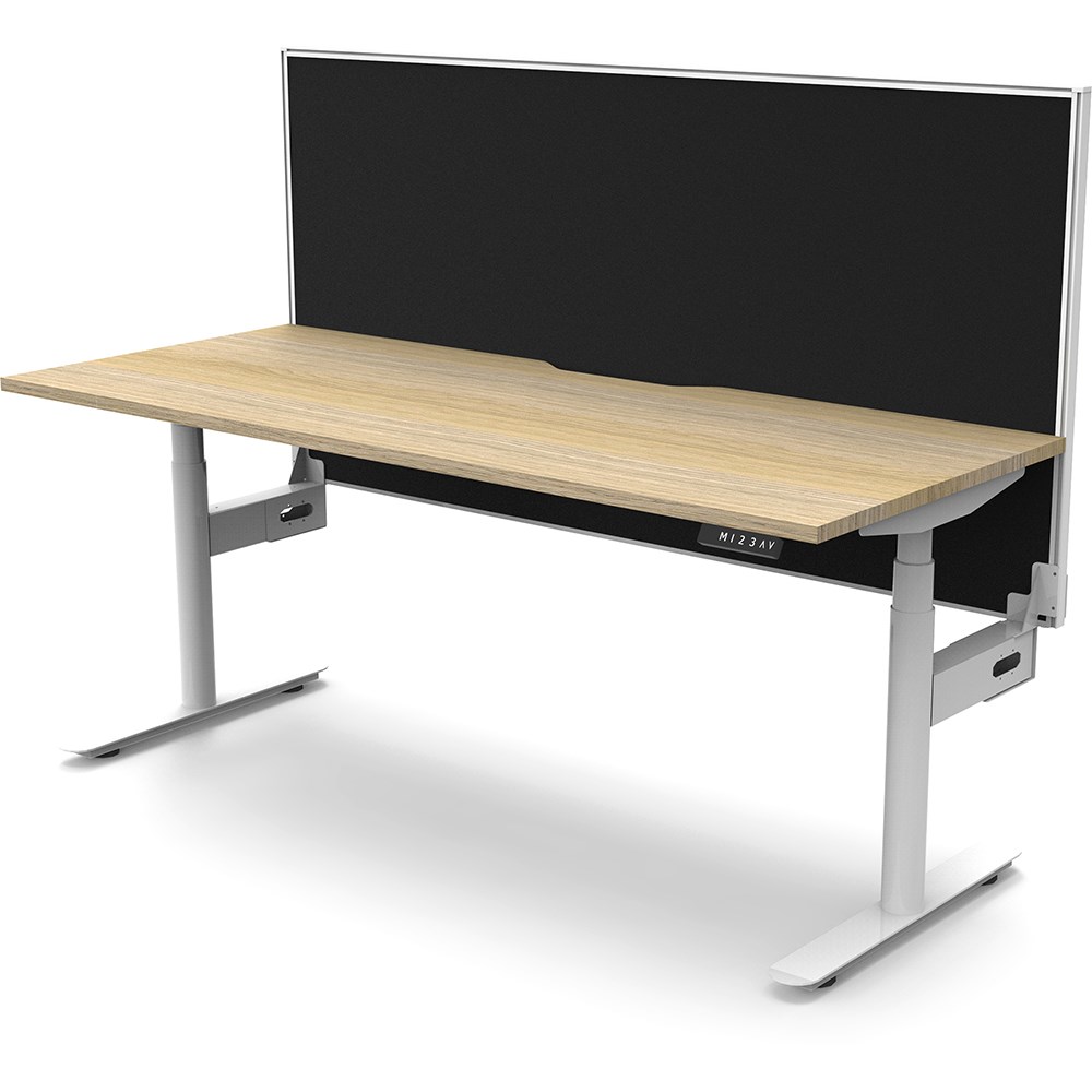 Natural Oak top with White frame. Unit Dimension: 1200mm W x 750mm D x 1330mm H. 620-1270mm height range for desk. E0 rated top. Powdercoat base. Digital control panel with 3 pre-set positions, LED display panel, keypad safety lock & reminder alarm setting. Anti-collision technology, noise emission of less than 50DB. Lifting capacity of 120kg with a max speed of 38mm per second. 70mm diameter round column legs. 700mm wide foot size with adjustable leveling feet, return foot: 700mm. Comes with 30mm thick privacy screen. 10 Year Manufacturer's Warranty. Delivery, installation and assembly charges may apply to furniture. Please enquire to confirm.