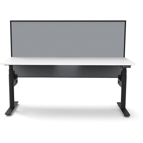 White top with Black frame. Unit Dimension: 1800mm W x 750mm D x 1330mm H. 620-1270mm height range for desk. E0 rated top. Powdercoat base. Digital control panel with 3 pre-set positions, LED display panel, keypad safety lock & reminder alarm setting. Anti-collision technology, noise emission of less than 50DB. Lifting capacity of 120kg with a max speed of 38mm per second. 70mm diameter round column legs. 700mm wide foot size with adjustable leveling feet, return foot: 700mm. Comes with 30mm thick privacy screen. 10 Year Manufacturer's Warranty. Delivery, installation and assembly charges may apply to furniture. Please enquire to confirm.