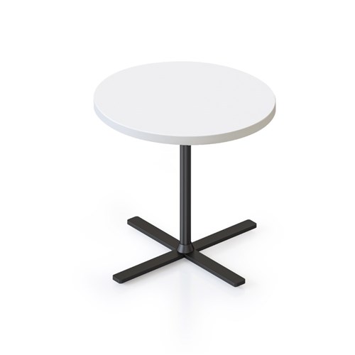 Dimensions: 500mm Diameter x 457mm High. 25mm thick table top. 4 leaf cross base powder coated underframe. Adjustable leveling feet. E0 enviroboard melamine worksurface. Note: Order with 587mmH Kolo table to create a nesting pair. 5 Year Manufacturer's Warranty. Delivery, installation and assembly charges may apply to furniture. Please enquire to confirm.