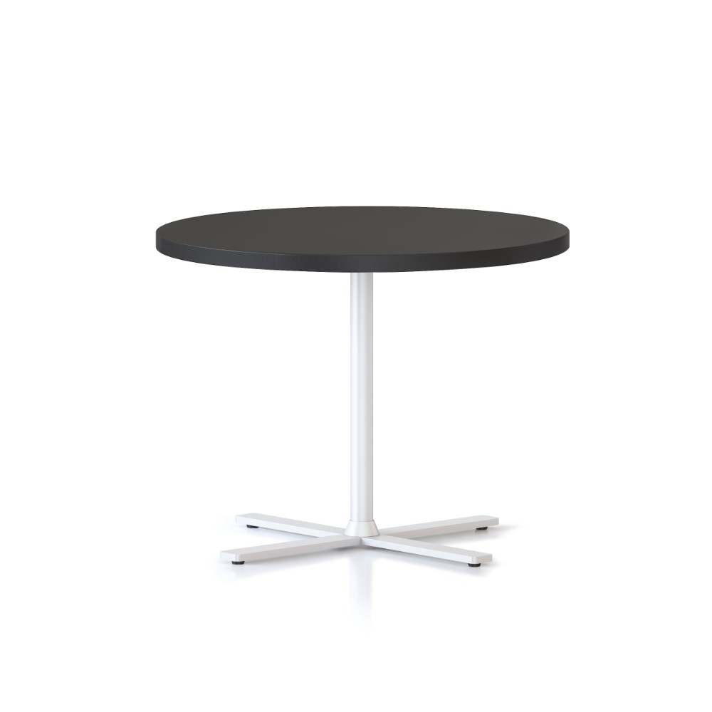 Dimensions: 600mm Diameter x 457mm High. 25mm thick table top. 4 leaf cross base powder coated underframe. Adjustable leveling feet. E0 enviroboard melamine worksurface. Note: Order with 587mmH Kolo table to create a nesting pair. 5 Year Manufacturer's Warranty. Delivery, installation and assembly charges may apply to furniture. Please enquire to confirm.