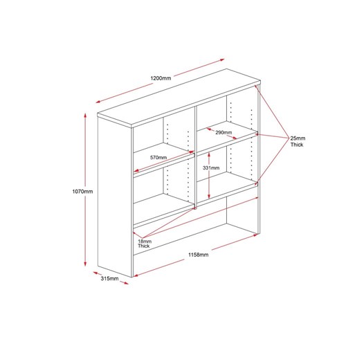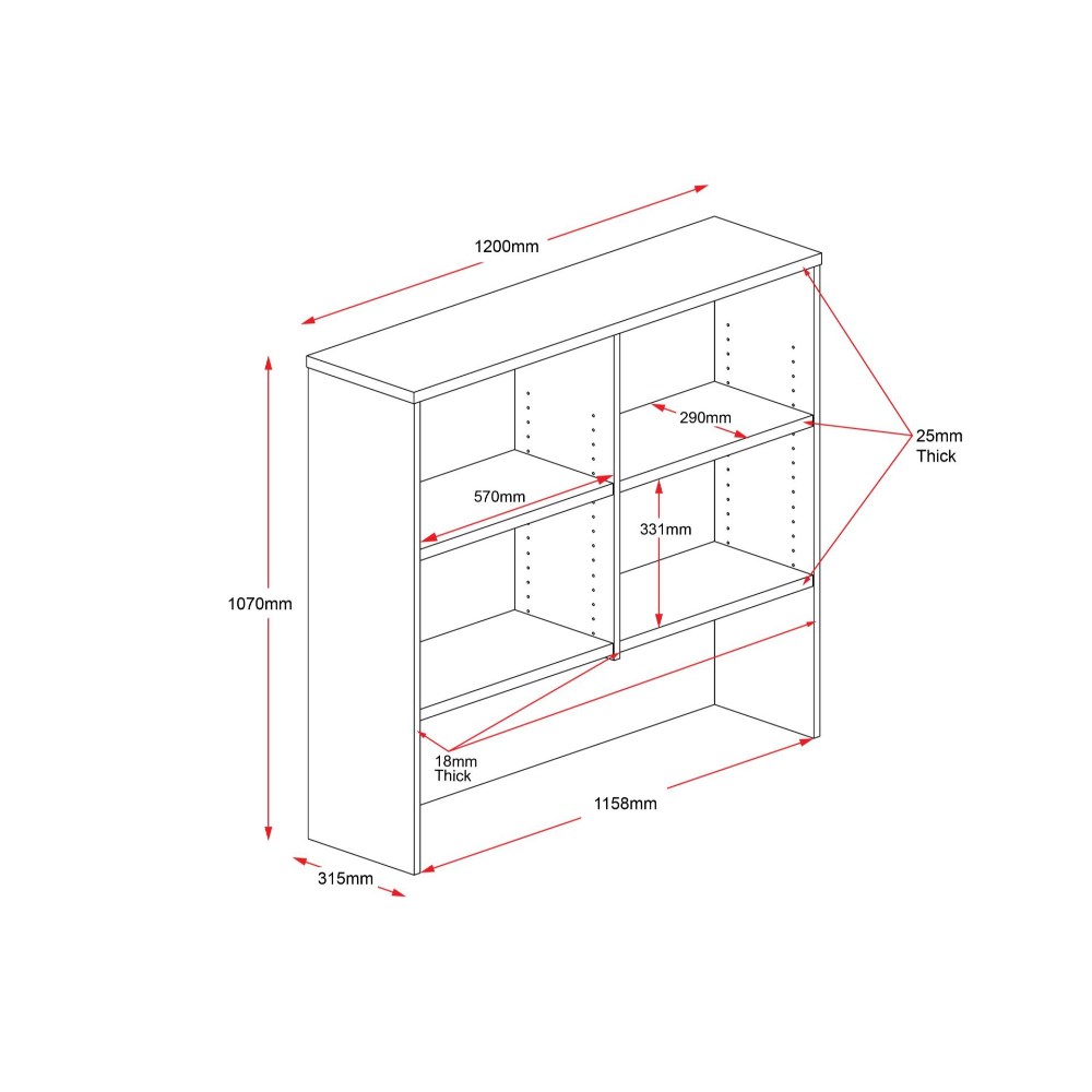 Rapidline Melamine Desk Hutch 1070Hx1200Wx315D 4 Shelves Cherry & Ironstone