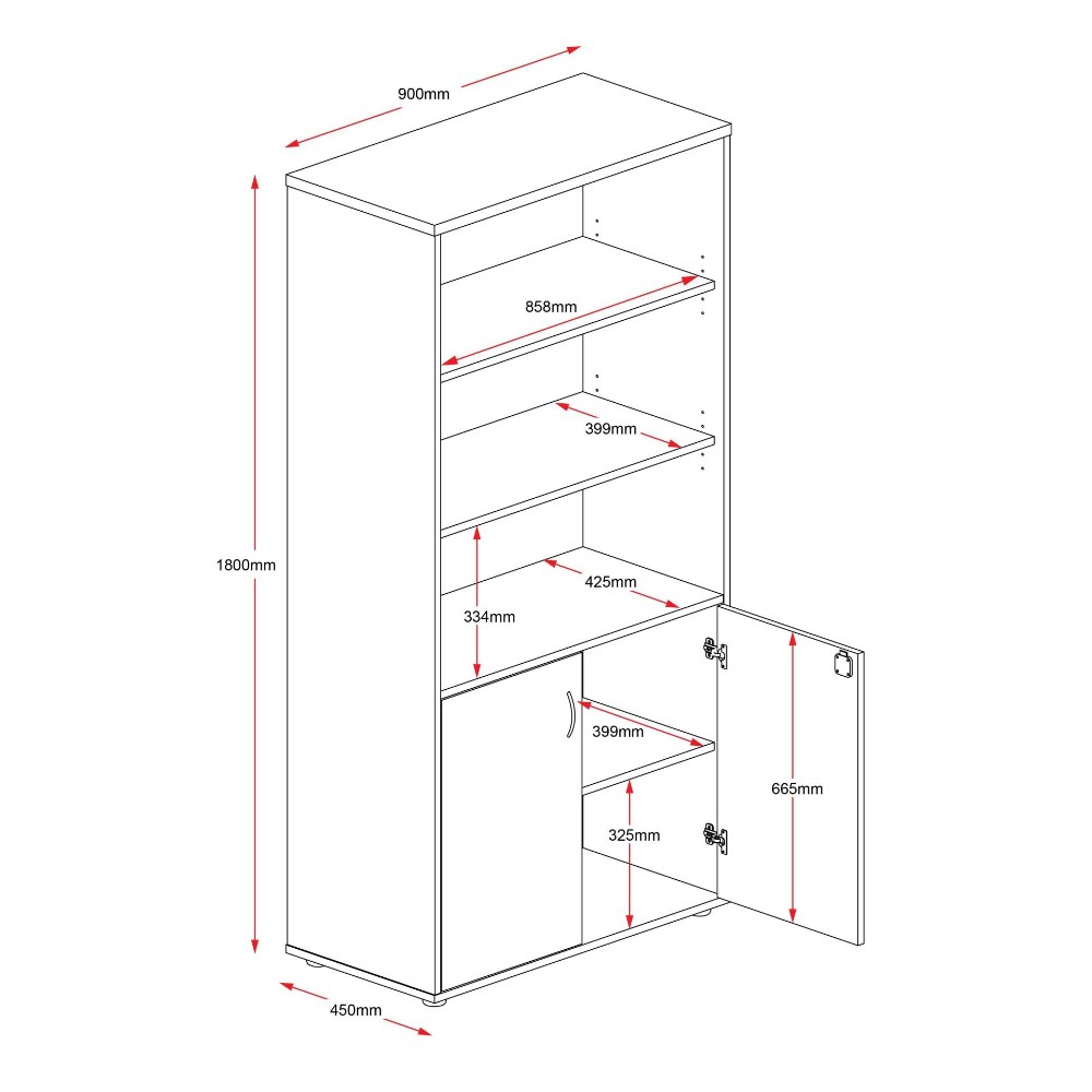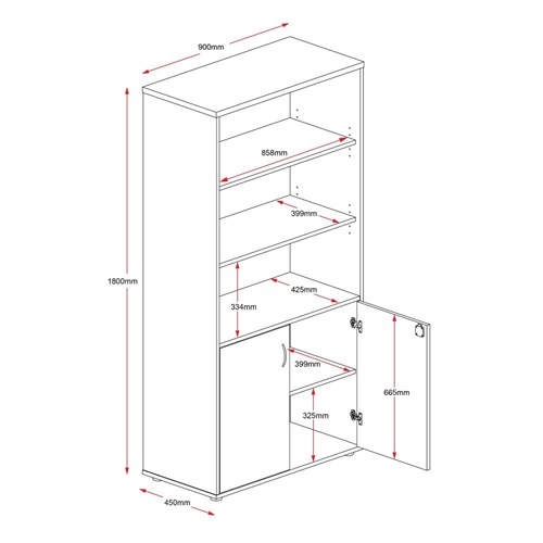 Lockable 1 Fixed Shelf in Cupboard 2 Adjustable Open Shelves Soft Close Hinges Assembly Required 5 Year Manufacturer's Warranty