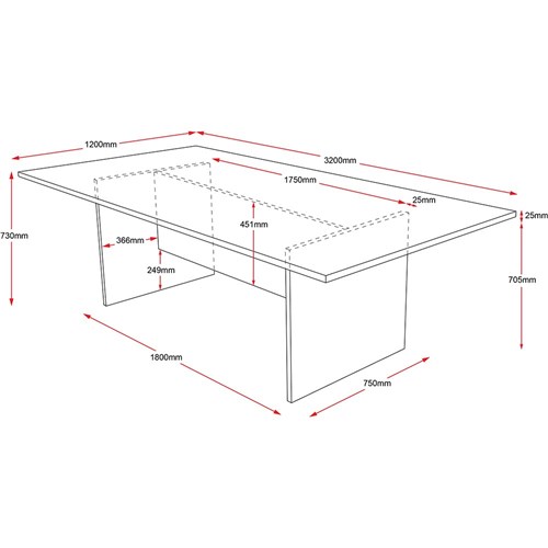 Boardroom Meeting Table. 25mm thick melamine top.. 18mm Sides. Durable construction. With E0 safety standard rated melamine board. Unit Dimension:730mm H x1200 mm W x 3200 mm D. 5 Year Manufacturer's Warranty.