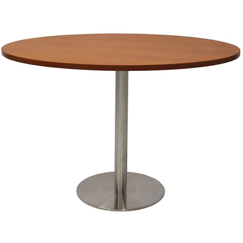 Rapidline Circular Meeting Table 600Mm Dia Disc Base Cherry Stainless Steel