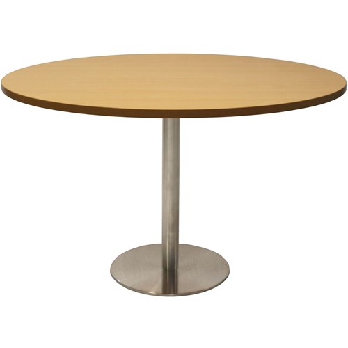 Circular Base Table with flat Disc Base 1200mm Diameter x 755mm H Overall 540mm Dia Disc Base Plate x 725mm H x 60mm Dia Column E1 Rated Melamine Board Top Adjustable Levelling Feet