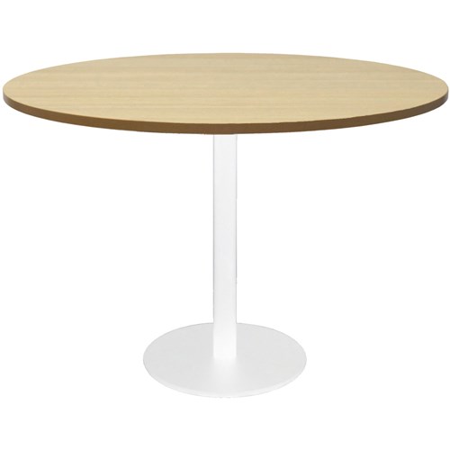Rapidline Circular Meeting Table 600Mm Dia Disc Base Natural Oak White Satin